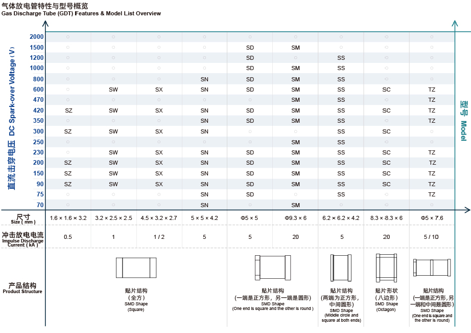 可選愛多電子氣體放電管 (GDT)產(chǎn)品系列: