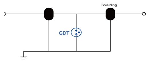 由于氣體放電管的低電容(小于1.0pF),在同軸線纜中對高頻信號的不會干擾系統(tǒng)。避雷器包含在同軸保護(hù)模塊中,它連接在中央導(dǎo)體和屏蔽模塊之間。根據(jù)應(yīng)用情況,建議將保護(hù)模塊的屏蔽模塊或外殼接地