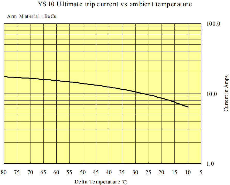1.上部端子通過4.活動臂、5.活動觸點和6.固定觸點將電流輸送至2.下部端子,該端子插入模制在3.下部塊中。所有零件都用鉚釘固定,用8個孔眼固定。參考圖7。當(dāng)7.雙金屬閥瓣檢測到Y(jié)S10周圍的高環(huán)境溫度時,雙金屬閥盤置于4.活動臂下方,將其向上推,以打開觸點。4.活動臂產(chǎn)生的熱量根據(jù)操作溫度和跳閘電流的組合進(jìn)行了適當(dāng)設(shè)計。因此,用戶可以為其產(chǎn)品選擇“必須保持電流”的最佳選擇。YS10通過各種方式與端子(孔)結(jié)合安裝,以便在帶電部件和可觸及的金屬部件之間保持足夠的爬電距離和間隙距離。