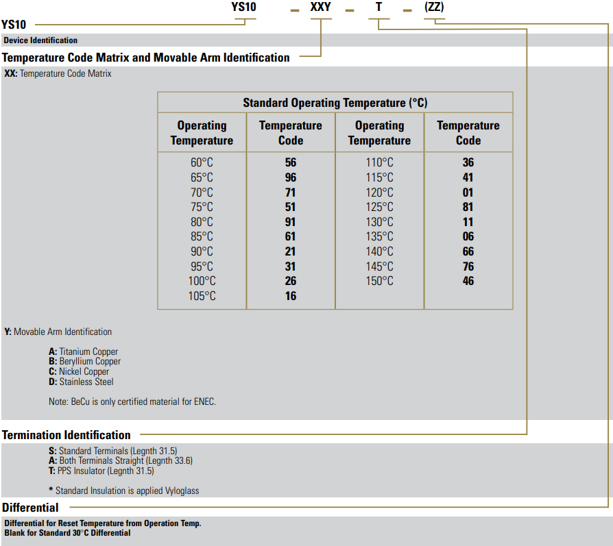 120°C工作溫度、BeCu活動臂、標(biāo)準(zhǔn)端子和30°C差壓。(90°C復(fù)位)