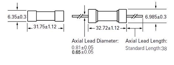 二、 6.35X32mm特高壓保險管規(guī)格如下,該特高壓電流保險管高壓可以做到500V、600V、1000V、3000V等規(guī)格,更多型號請電聯(lián)。