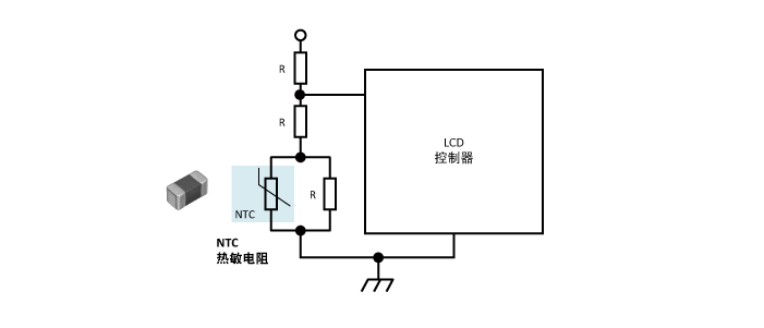 應(yīng)用示例:LCD(液晶顯示器)的溫度補(bǔ)償用于智能手機(jī)、平板等設(shè)備中的LCD(液晶顯示器)液晶物質(zhì)存在溫度依賴性,其對比度會因環(huán)境溫度而產(chǎn)生變化。因此需要根據(jù)環(huán)境溫度調(diào)整驅(qū)動電壓。下圖為組合了NTC熱敏電阻與固定電阻的代表性溫度補(bǔ)償電路示例。 圖9 LCD(液晶顯示器)的溫度補(bǔ)償