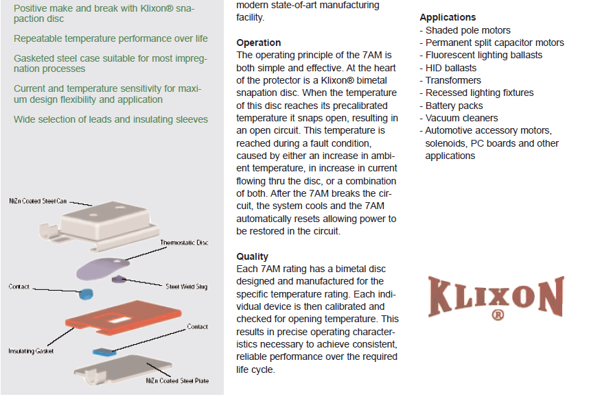 Product Name:Sensata/KLIXON 7AM Series Thermistat